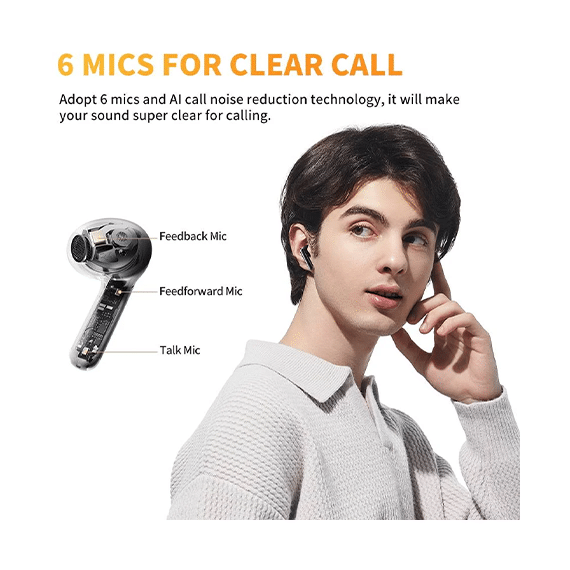 با 6 میکروفون و فناوری ENC، این هندزفری مکالماتی شفاف و بدون نویز پسزمینه را فراهم میکند.