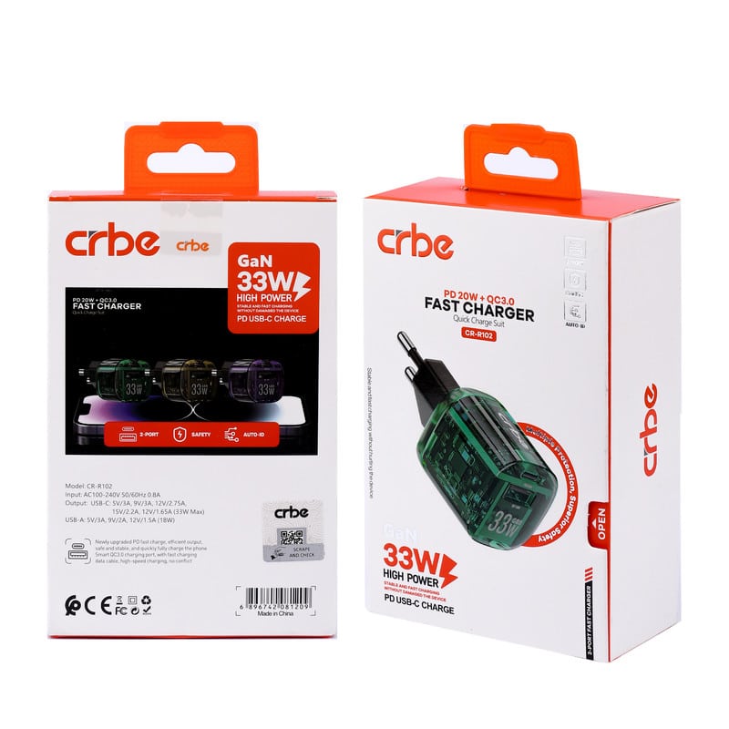 توضیحات شارژر دیواری 33 وات کربی مدل CR-R102 GaN