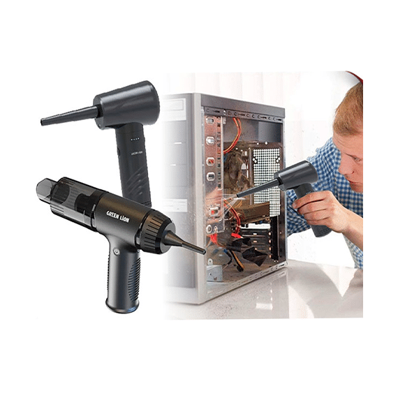 جارو شارژی گرین لاین Green Lion مدل 2in1 Wireless Vacuum Cleaner & Dust Blower یک دستگاه دوکاره هوشمند است که هم به عنوان دمنده هوا (Blower) و هم جارو مکنده عمل میکند. این جارو شارژی، برای تمیز کردن میز کار، درزها، محیطهای کوچک و حتی سرویس تجهیزات دیجیتال مانند موبایل، لپتاپ و کیس کامپیوتر انتخابی ایدهآل است.