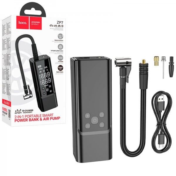 کمپرسور باد هوکو ZP7 دارای فشار حداکثر ۱۰٫۳ بار است و به عنوان یک پاور بانک ۵۰۰۰ میلیآمپرساعتی نیز عمل میکند. نمایشگر دیجیتال، چراغ قوه، عملکرد توقف خودکار و چندین حالت باد کردن، استفاده از این دستگاه را بسیار راحت و ایمن میکند.