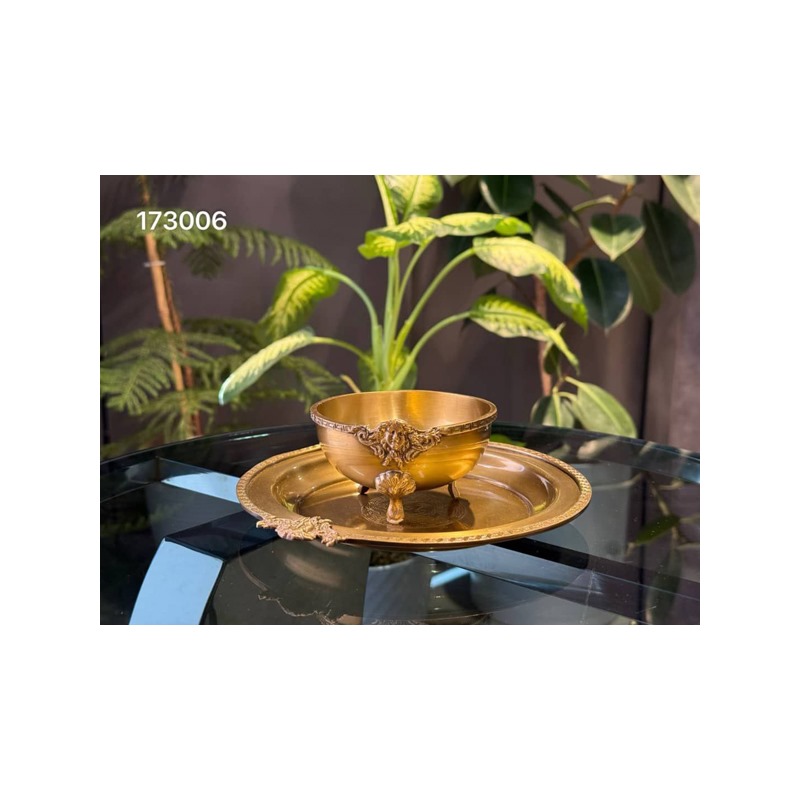 پیاله و پیشدستی برنجی هندی طرح ورساچه کد 173006 versace